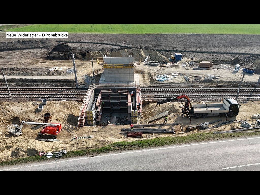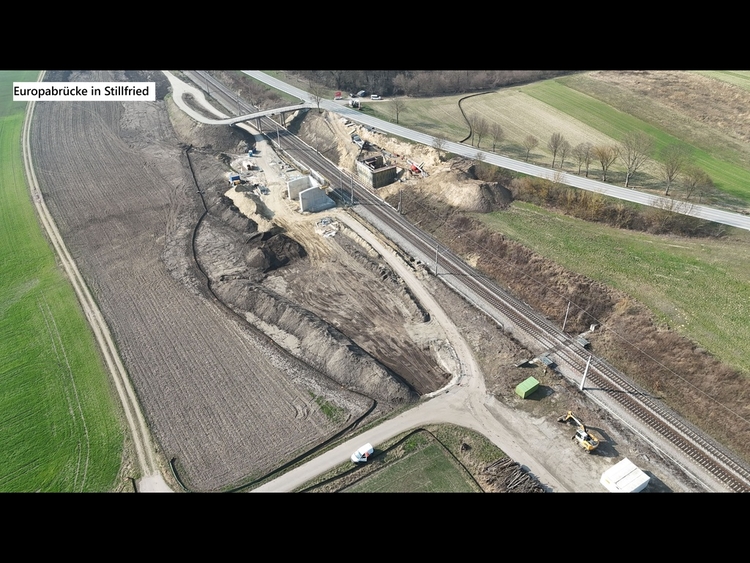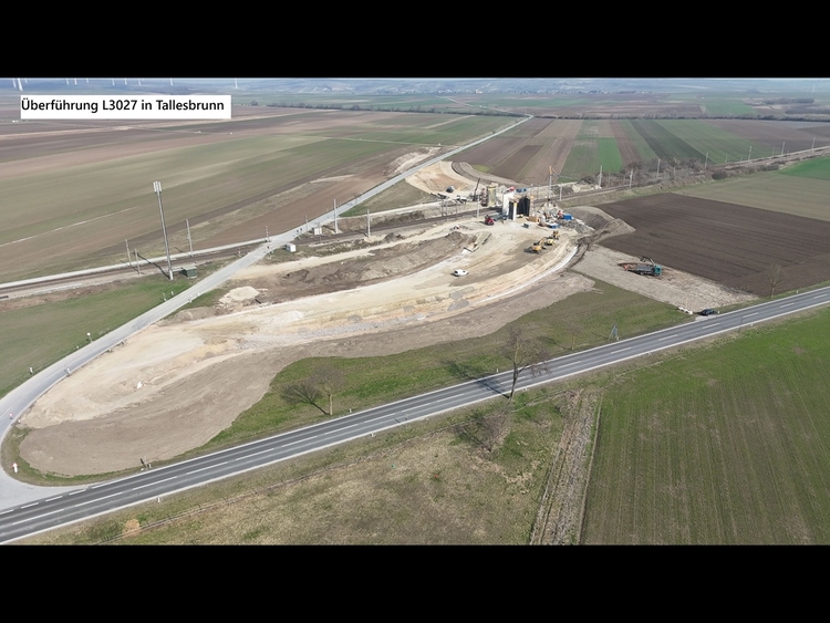 | Im Zuge des Ausbaus der Nordbahn haben die ersten Vormaßnahmen im nördlichen Streckenabschnitt zwischen Gänserndorf und Bernhardsthal begonnen. Die Bauarbeiten sind in mehrere Abschnitte unterteilt und erstrecken sich über eine Distanz von rund 15,5 Kilometern, vom südlichsten Punkt in Tallesbrunn bis zum nördlichsten Bereich in Dürnkrut. In Tallesbrunn wird die bestehende Eisenbahnkreuzung der L3027 aufgelassen und durch eine neue, moderne Überführung ersetzt. Dadurch wird die Verkehrssicherheit erhöht. Auch im Bereich Stillfried erfolgen umfangreiche Arbeiten: Die Senke „Grubergraben“ wird abgeflacht, um die zukünftige Befahrung zu vereinfachen. Zusätzlich wird die bestehende Europabrücke aufgrund ihrer eingeschränkten Tragfähigkeit (derzeit 16 Tonnen) durch eine neue Brücke ersetzt. In Dürnkrut entsteht entlang der Bahnstrecke ein neuer Wirtschaftsweg, dieser ist für die weiteren Baumaßnahmen entlang der Strecke notwendig. In diesem Zuge wird auch eine neue Brücke über den Sulzbach errichtet. Rund 65.000 m³ Dammkörper werden dabei geschüttet und etwa 25.000 m³ Material ausgehoben. |