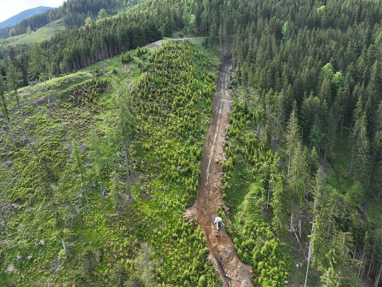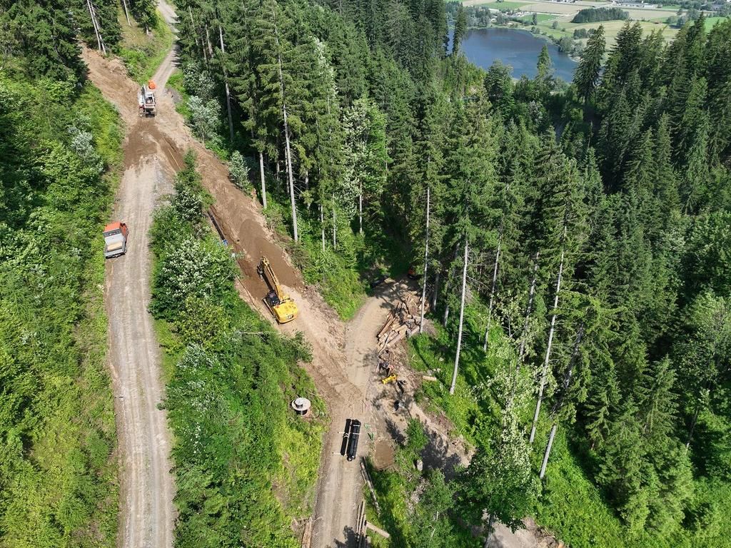 Errichtung der Druckrohrleitung über rund 1.570 lfm aus zug- und schubfesten Gussrohren DN300, bei Geländeneigungen bis zu 38°, inklusive Verlegung der Steuerkabel
