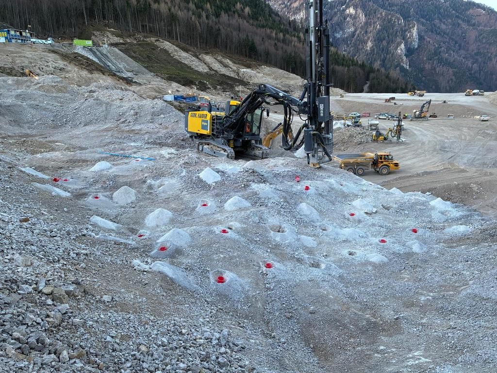 Dadurch wird die Effizienz und Genauigkeit der Sprengvorbereitung weiter gesteigert und die geometrische Ausbildung des Beckens exakt entsprechend der Planung umgesetzt