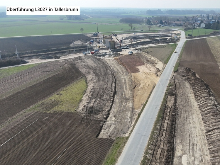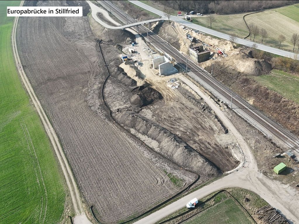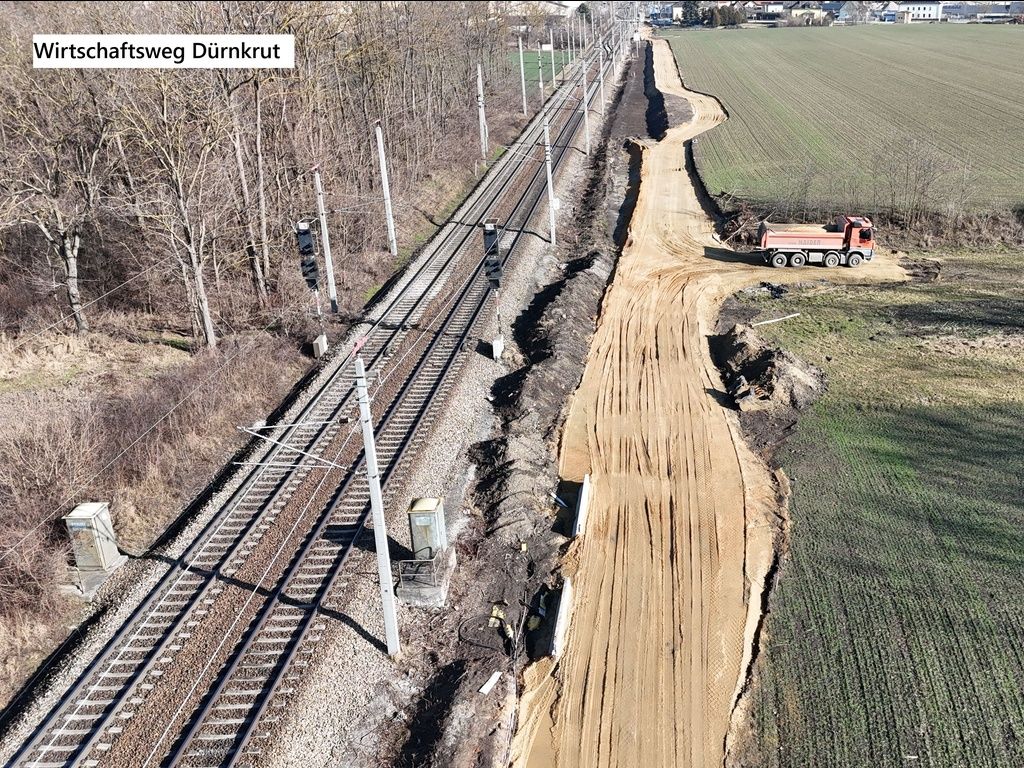 | Im Zuge des Ausbaus der Nordbahn haben die ersten Vormaßnahmen im nördlichen Streckenabschnitt zwischen Gänserndorf und Bernhardsthal begonnen. Die Bauarbeiten sind in mehrere Abschnitte unterteilt und erstrecken sich über eine Distanz von rund 15,5 Kilometern, vom südlichsten Punkt in Tallesbrunn bis zum nördlichsten Bereich in Dürnkrut. In Tallesbrunn wird die bestehende Eisenbahnkreuzung der L3027 aufgelassen und durch eine neue, moderne Überführung ersetzt. Dadurch wird die Verkehrssicherheit erhöht. Auch im Bereich Stillfried erfolgen umfangreiche Arbeiten: Die Senke „Grubergraben“ wird abgeflacht, um die zukünftige Befahrung zu vereinfachen. Zusätzlich wird die bestehende Europabrücke aufgrund ihrer eingeschränkten Tragfähigkeit (derzeit 16 Tonnen) durch eine neue Brücke ersetzt. In Dürnkrut entsteht entlang der Bahnstrecke ein neuer Wirtschaftsweg, dieser ist für die weiteren Baumaßnahmen entlang der Strecke notwendig. In diesem Zuge wird auch eine neue Brücke über den Sulzbach errichtet. Rund 65.000 m³ Dammkörper werden dabei geschüttet und etwa 25.000 m³ Material ausgehoben. |